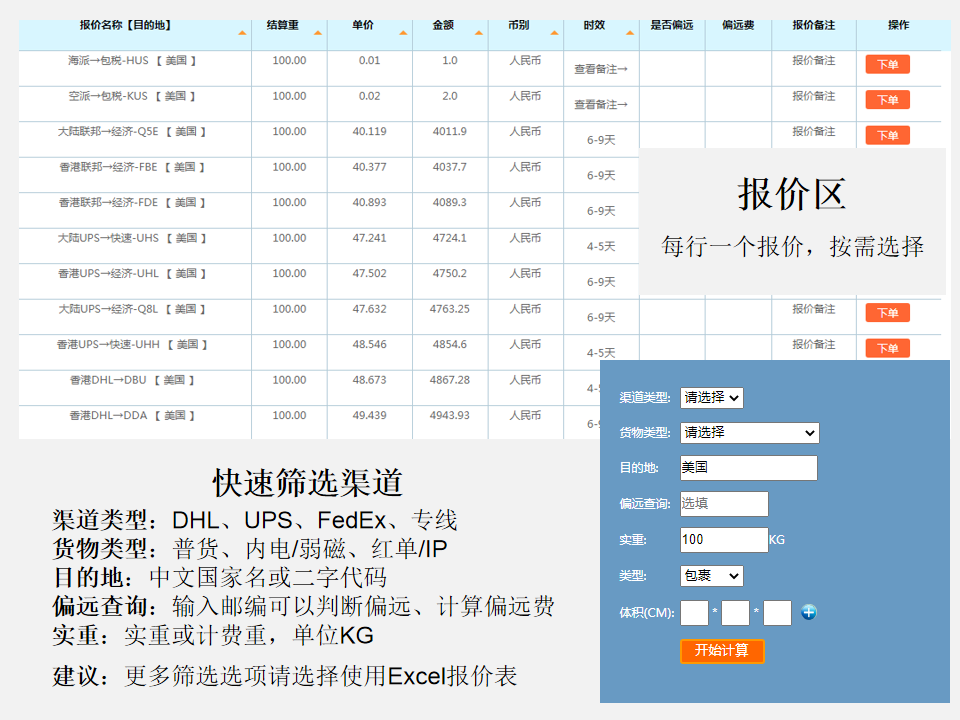 国际快递价格在线计算